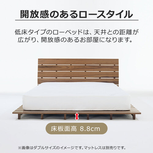 床板面高がわずか8.8cmのロータイプなので、圧迫感が少なく開放的なベッドルームを演出します。