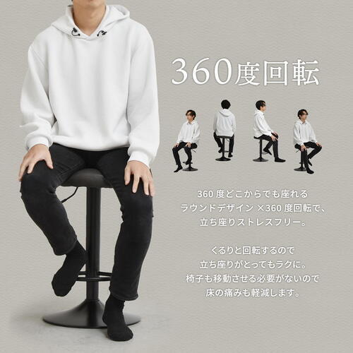ガス圧昇降式で高さ調節可能
