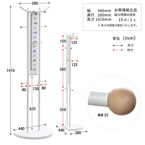 素材:【目盛り板・底板】中質繊維板にメラミン貼り 【フレーム】スチールパイプ(粉体塗装) 【フック先端】天然木(ブナ)