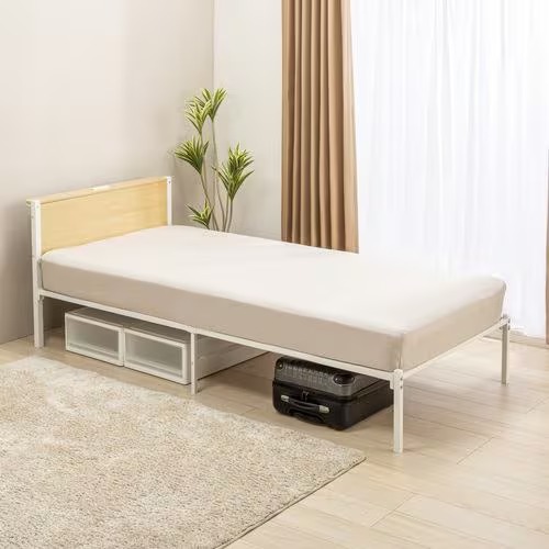 [シングル]ヤマダオリジナル パイプベッドフレーム「ロッキー」ナチュラル色