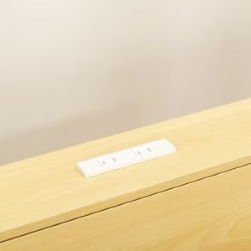 ●ヘッドボードには小さな棚があり、2口コンセントが付いています。寝ながらスマホの充電ができるので便利。