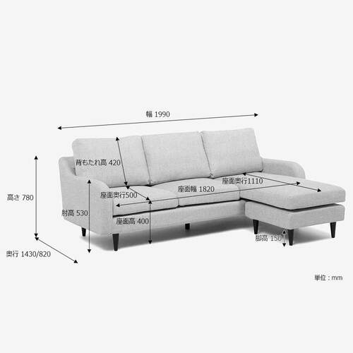 サイズ(単位:mm):幅1990X奥行1430/820X高さ780 座面高400