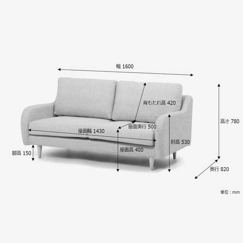 サイズ(単位:mm):幅1600X奥行820X高さ780 座面高400