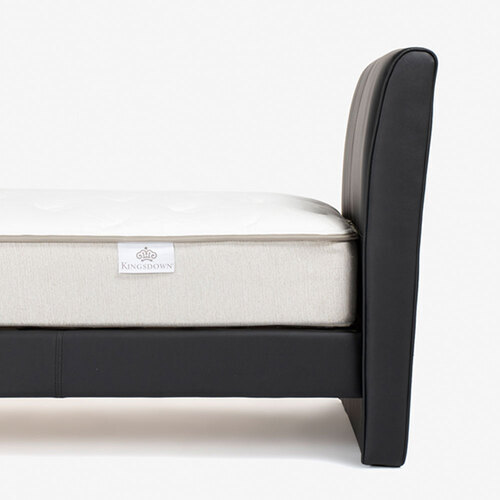 デザインのポイントとなるヘッドボードの表側には本革を使用しており、素材のもつ上品な印象を空間に与えてくれます。見た目だけでなく、本革ならではの質感を感じられる肌触りも魅力です。※マットレスで隠れる部分や背面、サイドフレームにはPVC(合成皮革)を使用した半革張り仕様です。
