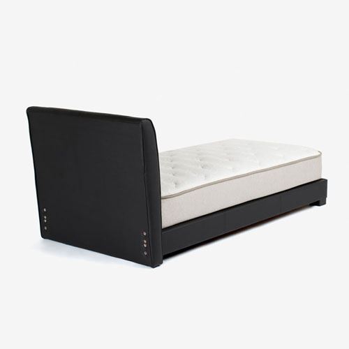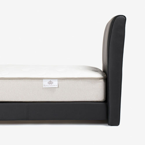 デザインのポイントとなるヘッドボードの表側には本革を使用しており、素材のもつ上品な印象を空間に与えてくれます。見た目だけでなく、本革ならではの質感を感じられる肌触りも魅力です。※マットレスで隠れる部分や背面、サイドフレームにはPVC(合成皮革)を使用した半革張り仕様です。