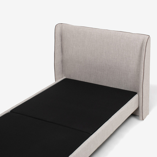 マットレスを囲うような形とパイピングで横から見ても美しいデザインです。 また、クッション性のある布張りのヘッドボードはもたれてリラックスできる背あたりの良さも魅力です。
