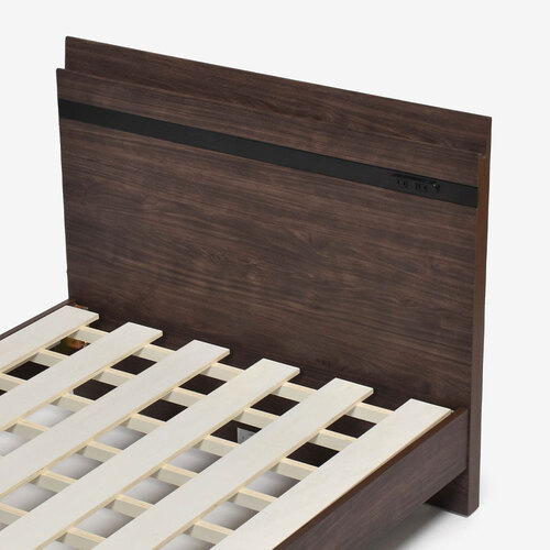 ヘッドボードにはスマートフォンを立てかけられるスリットが付いています。便利な2口コンセントも付いており機能性も充実しています。