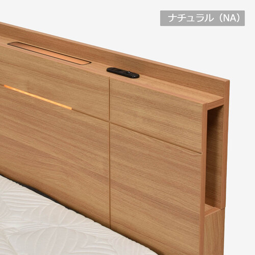 ヘッドボード上部の棚にスマートフォンなどの小物を置けるほか、両側面には開口部(内寸:幅50x奥行200x高さ220mm※全サイズ共通)があり、本などが収納できます。