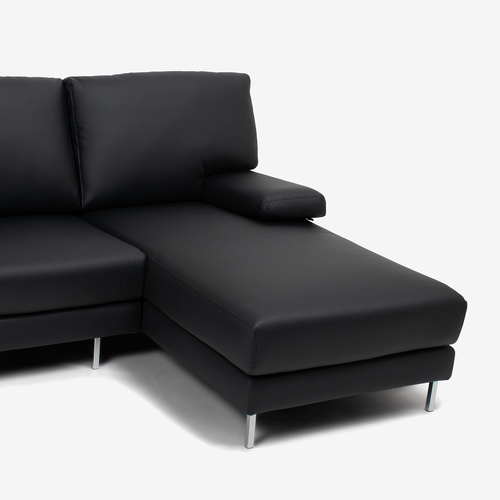 大塚家具 [3人掛]カウチソファ「ベローナ2」向かって右カウチ ソフトレザーブラック色#C500S 金属脚