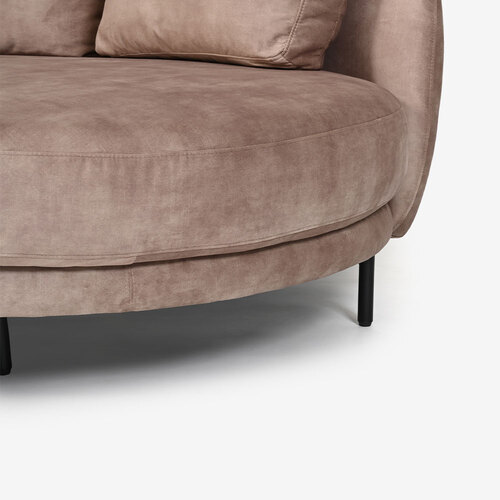 自由な姿勢でくつろげるラウンドカウチソファ。カーブした形状のカウチ部分は身体を包み込むホールド感が生まれ、脚を伸ばしたり、あぐら姿勢でくつろいだりと自由な姿勢でお座りいただけます。背クッションのカバーは取り外してクリーニング可能です。