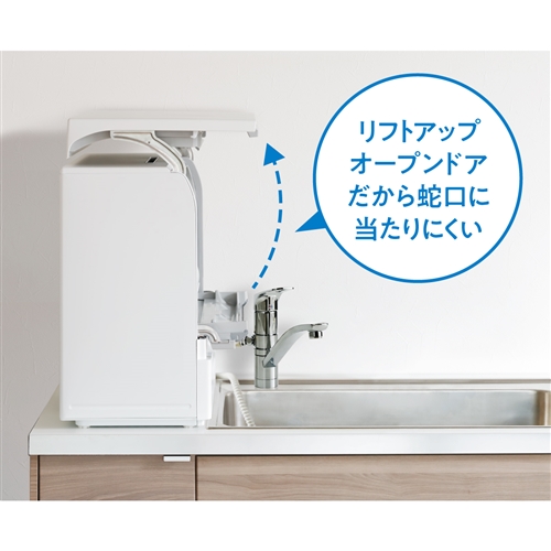 シンク横など、幅約55cm×奥行約29cmの設置スペースがあれば、すっきり納まります(※奥行だけでなく、扉オープン時のサイズもご確認ください。※)。