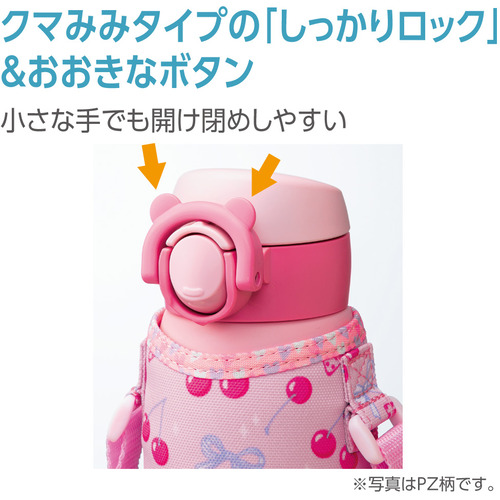 小さな手でも開け閉めしやすい 「クマみみタイプのしっかりロック&おおきなボタン」