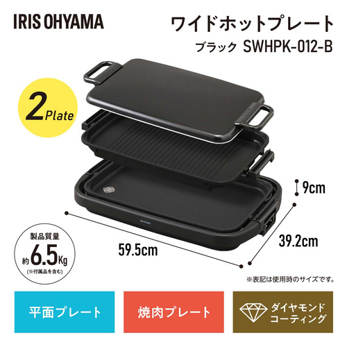 アイリスオーヤマ SWHPK-012-B ワイドホットプレート2枚プレート ブラック