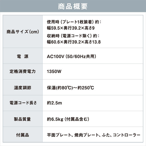 付属品:平面プレート、焼肉プレート、ふた、コントローラー