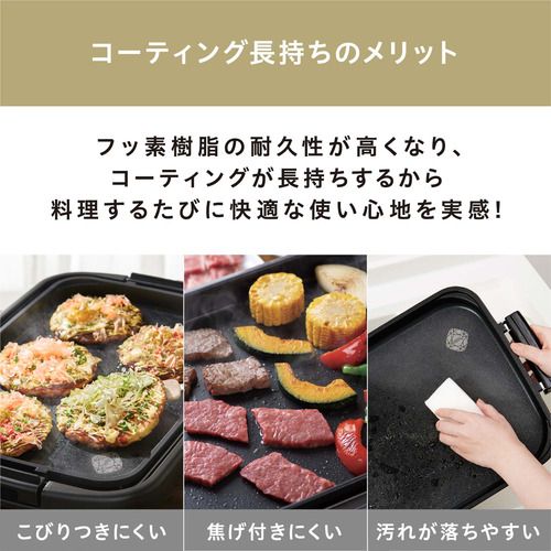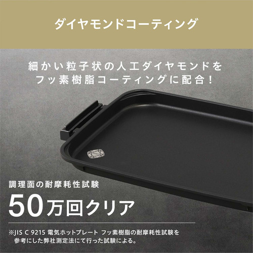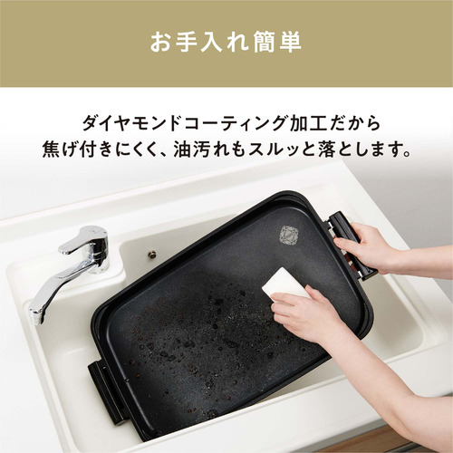 プレートは耐久性が高いダイヤモンドコーティング加工で、こびりつきにくく傷にも強く長持ちします。そしてお手入れも簡単です。
