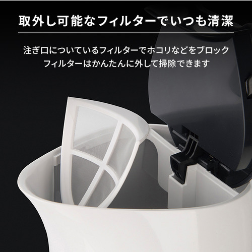 お手入れが簡単で清潔にお使いいただける、取り外し可能なフィルターがついています。