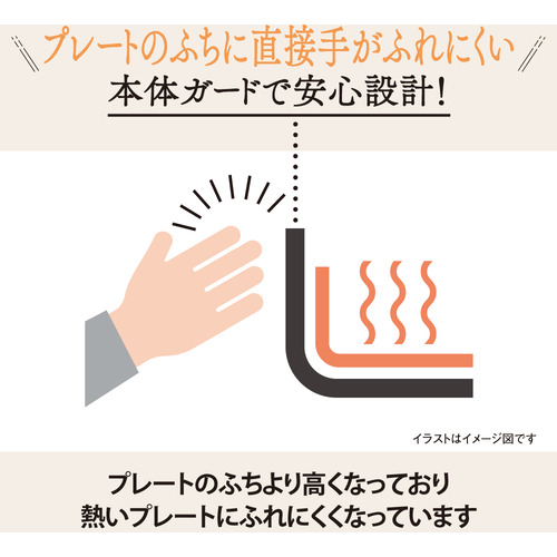 ●プレートのふちに直接手が触れにくい「本体ガード」