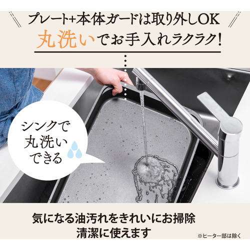 本体ガードは分解できて丸洗いできるので、気になる油汚れもきれいに落とせます。