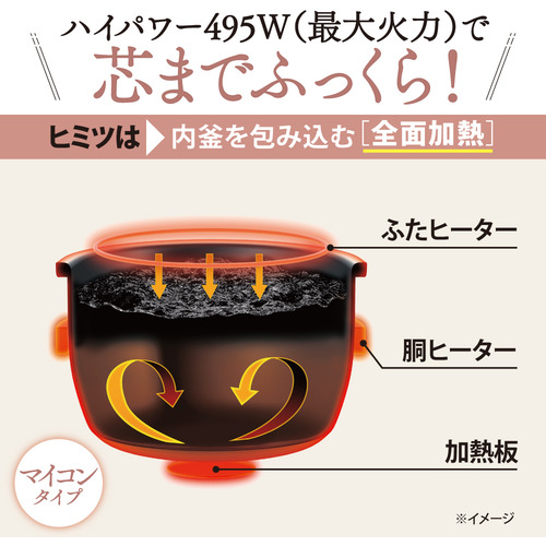 上ふた、側面、釜底のヒーターが釜全体を包み込み、芯までふっくら炊き上げます。