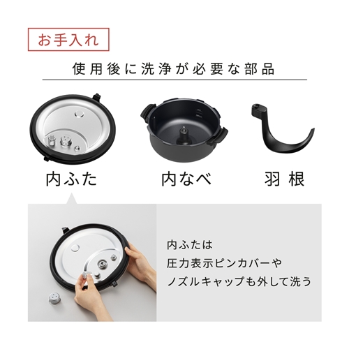 業界最高クラス(※2022年12月7日現在。2023年2月1日発売予定。国内家庭用調理鍋市場において。調理時最大圧力。(当社調べ)※)約2気圧+メニューに応じて最適な圧力を選択