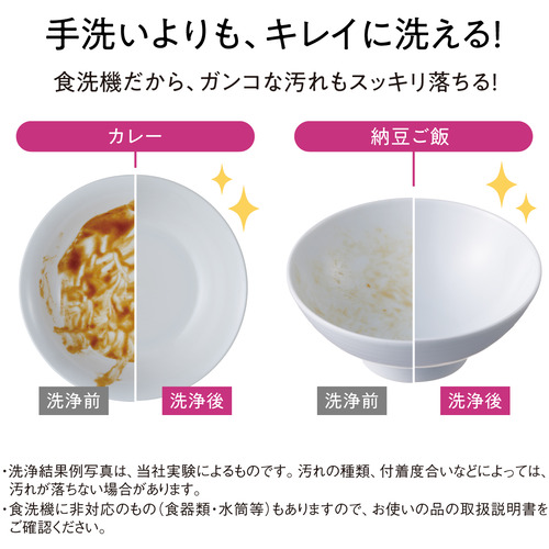 ●洗うと同時に食器の除菌(※〈除菌の試験内容〉●試験機関:(一財)日本食品分析センター ●試験方法:寒天平板培養法 ●除菌方法:加熱高温水噴射方式 ●除菌対象:庫内食器類 ●試験結果:99%以上の除菌効果。試験成績書発行年月日:2022年9月13日 試験成績書発行番号:第22065038001-0101号 1種類のみの菌で実施しています。除菌効果は、食器の量や位置、汚れの程度により異なります。※)ができる「ストリーム除菌洗浄」