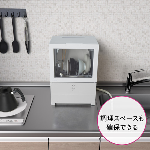 単身キッチンに置けるコンパクトサイズで、1人分(6点(※日本電機工業会 自主基準による。※))の食器が洗えます。