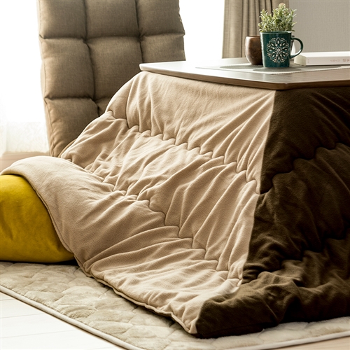 【こたつ&布団セット】[長方形190×240]ヤマダオリジナル こたつ布団 抗菌防臭 茶色×ベージュ フリース4枚はぎ ウォッシャブル