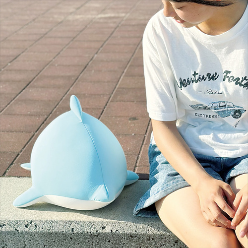 サラサラしたたっぷりな伸縮性生地と、素肌を感じさせるパウダービーズ?がコロンとした可愛いいるかのフォルムと相まって、抱いた時の心地よさがたまりません!お部屋はもちろん、移動の車の中や、はたまたお外でも・・・、いろんなところへ連れてって癒されてね。
