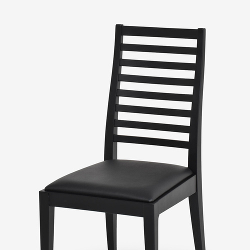 材質:フレーム:ブナ材 WLBK色(ウッドライクブラック色) 張地:PVC(合成皮革)BK(ブラック)色 クッション材:ウレタンフォーム、ウエービングテープ