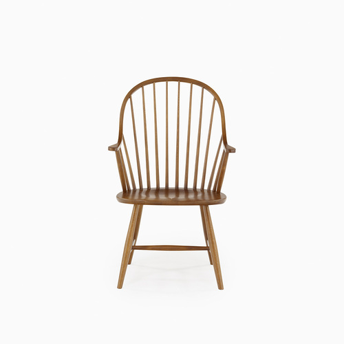 背もたれが特徴的なウィンザー様式のダイニングチェアは時代を超えて愛されるデザインです。アーム付きは背もたれから肘にかけての柔らかい曲線も印象的です。