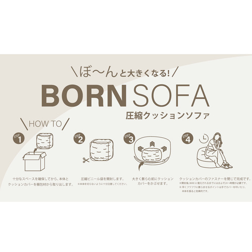 1人用クッションソファ BORNSOFA RC-101/JAMWHITE ボーンソファ 布ジャムホワイト 圧縮クッションソファ