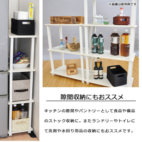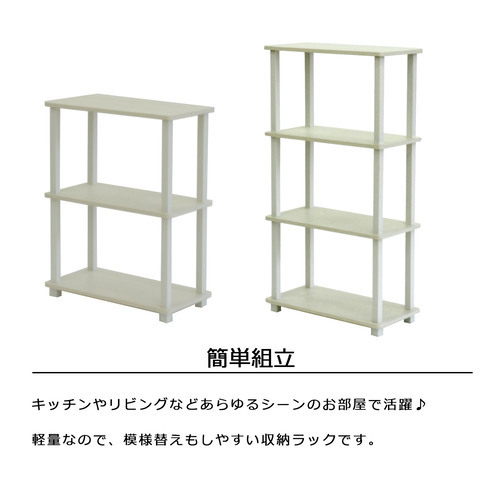 柱に樹脂素材を使用しているため、軽く、移動が楽にできます。模様替えの際も楽々。棚一枚あたり耐荷重10kgと強度もしっかり。