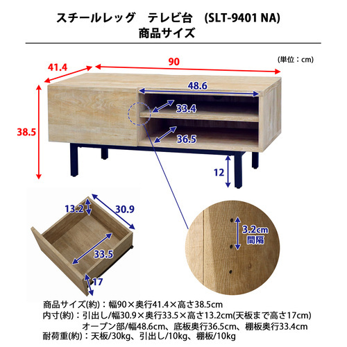 耐荷重(約):天板30kg、引出し10kg、棚板10kg