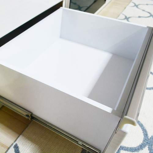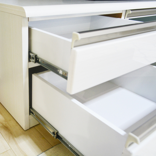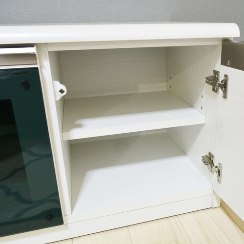 程よく中を隠すシックなブラックガラスです。扉を閉じたままAV機器のリモコン操作が可能です。