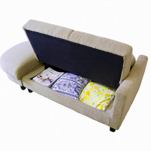 後藤家具物産 カウチソファ「サリー」アイボリー SO-05K-IV 座面下には大容量の収納庫付のコンパクトカウチソファー!アイボリー色!