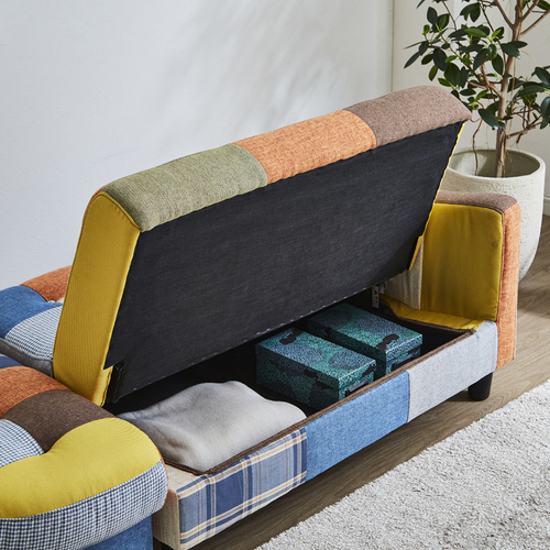 【ウェブ限定】カウチソファ サリー パッチワーク色 DXSO-05KDXPW 座面下には大容量の収納庫付のコンパクトカウチソファーパッチワーク色