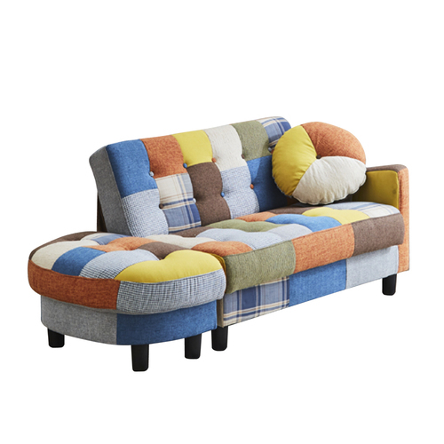 カウチソファ「サリー」パッチワーク色 DXSO-05KDXPW 座面下には大容量の収納庫付のコンパクトカウチソファー!パッチワーク色!