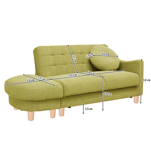 2人掛け本体サイズ幅110×奥72×高68cm、オットマンサイズ幅72×奥43×高70cmのコンパクトサイズでオットマンは単体で使用可能でお部屋の間取りに合わせてご利用可能。