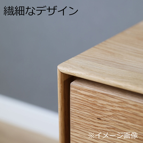 天板と側板の接合は互いの小口を斜め45°にカットすることでコーナー部分に厚みが出ず、すっきりとした印象に仕上がります。