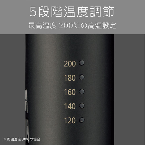 ●5段階の温度調節機能で、約200℃までの高温設定が可能。