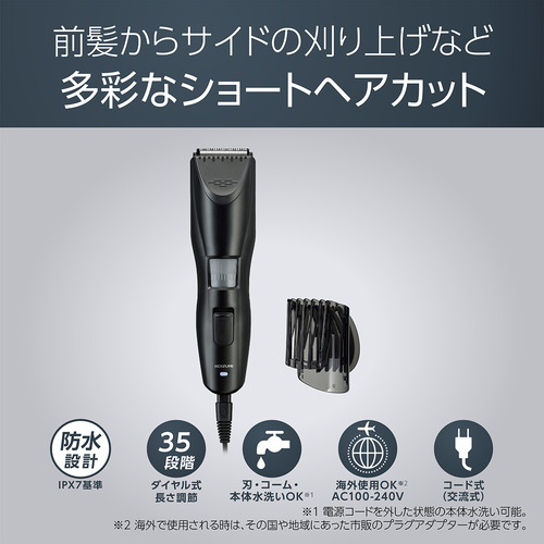 ●仕上がりの長さは調節ダイヤルで、1mm単位(1〜35mm)まで設定可能。コーム無しで0.5mm