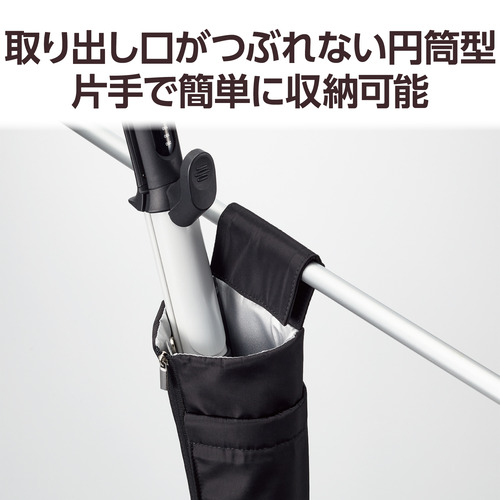 ●円筒型だからつるしている状態でも取り出し口がつぶれず、片手で簡単に収納することができます。