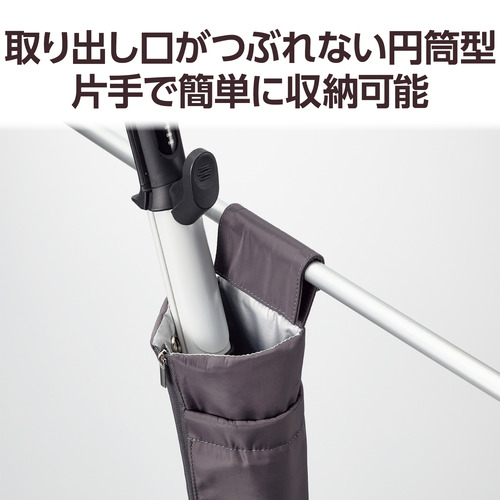 ●円筒型だからつるしている状態でも取り出し口がつぶれず、片手で簡単に収納することができます。