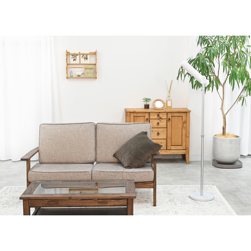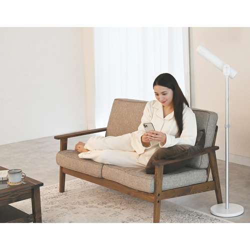吹き出し口(ドライヤー本体)は高さを81cm〜142cmの間で、角度を上下180°の範囲で調節することができます。使用するシーンに合わせ、使いやすい高さ・角度を調節してお使いください。
