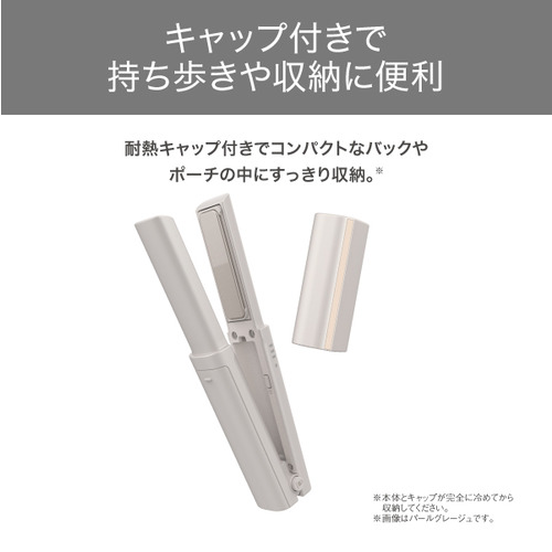 ●〈髪すべりが良いナノセラミックコーティング〉 なめらかな髪すべりで、ムラなく熱を伝えます。〈海外使用OK※〉 航空機内には電池を本体から外して手荷物として持ち込めます。 ※航空機で持ち運ぶ際は、必ず電池を本体から取り外して、機内持ち込みの手荷物に入れてください。〈自動電源OFF〉 万が一電源OFFを忘れても、最終操作後約15分後に自動的に電源が切れるので安心です。〈電池残量表示〉 充電残量が少なくなると点滅でお知らせします。2時間半の満充電で約25分使用可能です。※ ※充電には電源定格(5V2.0A以上)のACアダプター・モバイルバッテリーなどが別途必要です