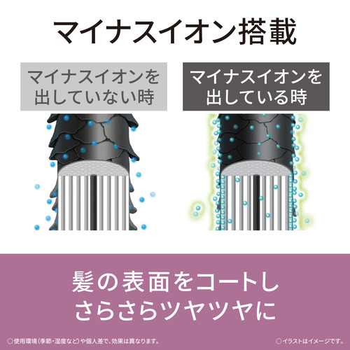 ●マイナスイオンが髪の表面をやさしくコートし、さらさらツヤツヤにスタイリング。