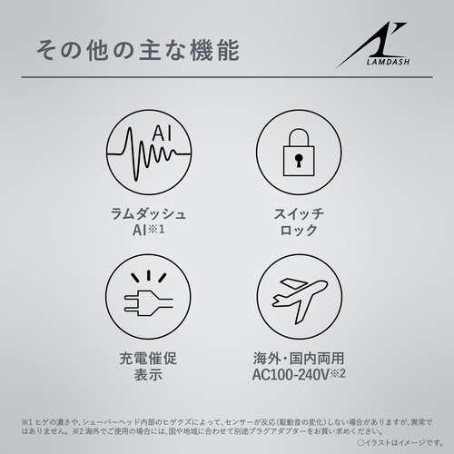 パワーコントロール:ラムダッシュAI(※ヒゲの濃さや、シェーバーヘッド内部のヒゲクズによって、センサーが反応(駆動音の変化)しない場合がありますが、異常ではありません。※)(センシング約216回/秒)