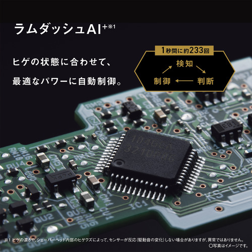 「ラムダッシュAI+」がヒゲの状態に合わせて最適なパワーに自動制御 ※ヒゲの濃さや、シェーバーヘッド内部のヒゲクズによって、センサーが反応(駆動音の変化)しない場合がありますが、異常ではありません。