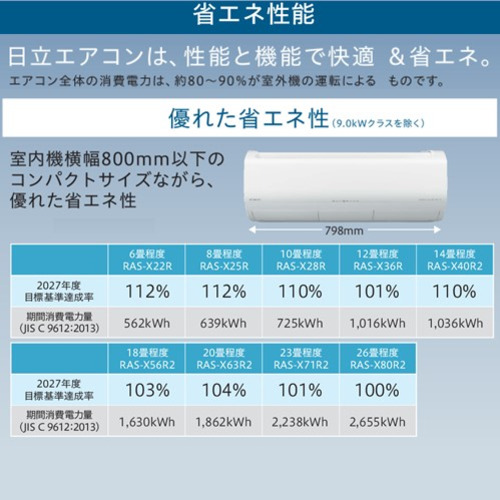 日立 RAS-X25R W エアコン 白くまくん Xシリーズ (8畳用) スターホワイト