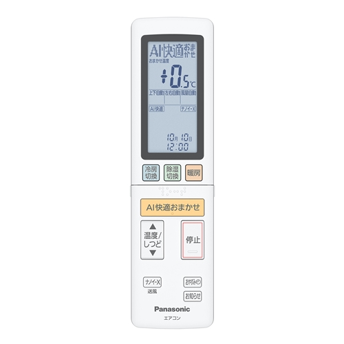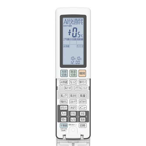 リモコン:新・AI快適おまかせ(おまかせ温度設定)、お知らせ機能(電気代等)、バックライト液晶、0.5℃刻み